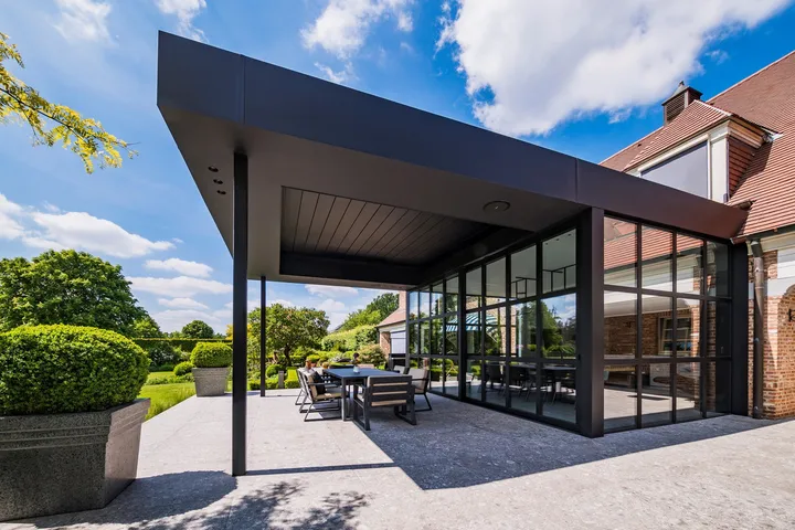 Engineered in Belgium and known for their cutting-edge design, Renson pergolas like the Camargue® and Amani feature fully adjustable aluminium louvres that let you control light, airflow, and shelter with ease. Optional features such as integrated lighting, heating, and side panels make them ideal for year-round outdoor living. - Aluminium Pergolas & Verandas by Morvelle