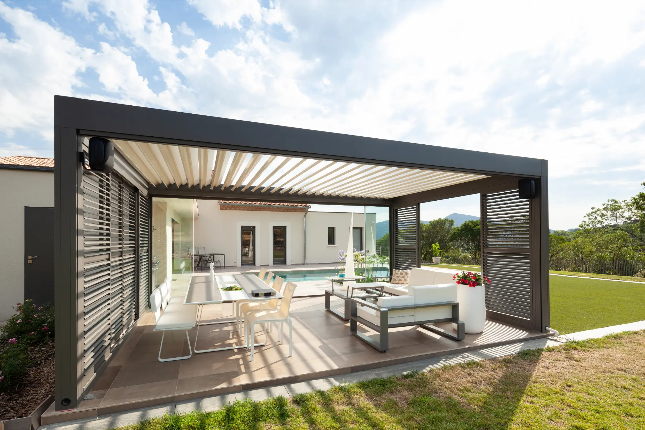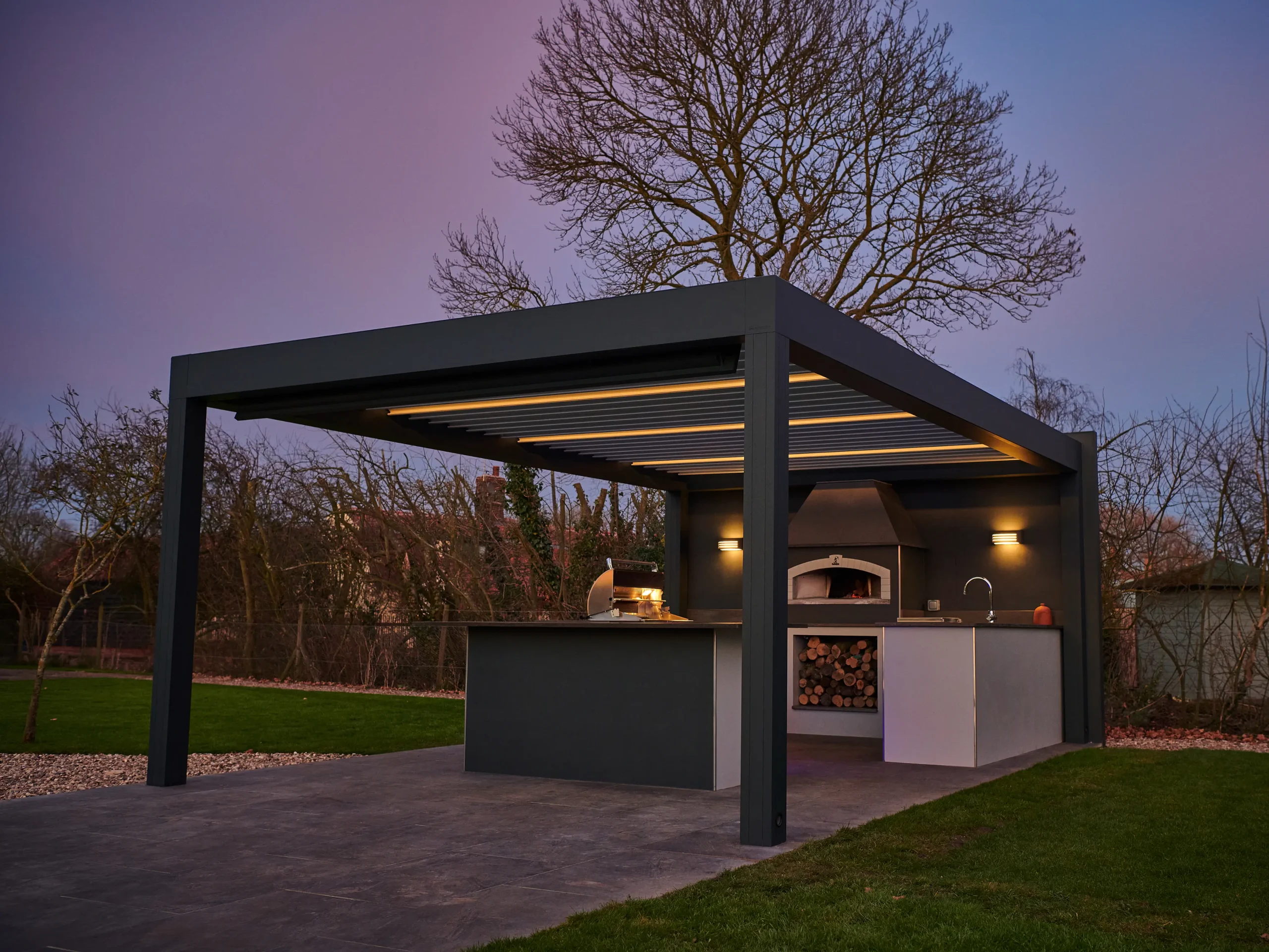 Choose heating, sound, and LED lighting to enjoy your pergola year-round.